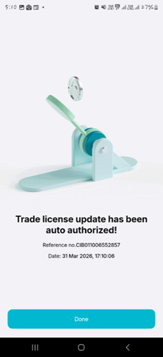 Note: The approval process for Trade Licence Update will depend on the setup done by the iBusiness System Administrator of the respective organization.